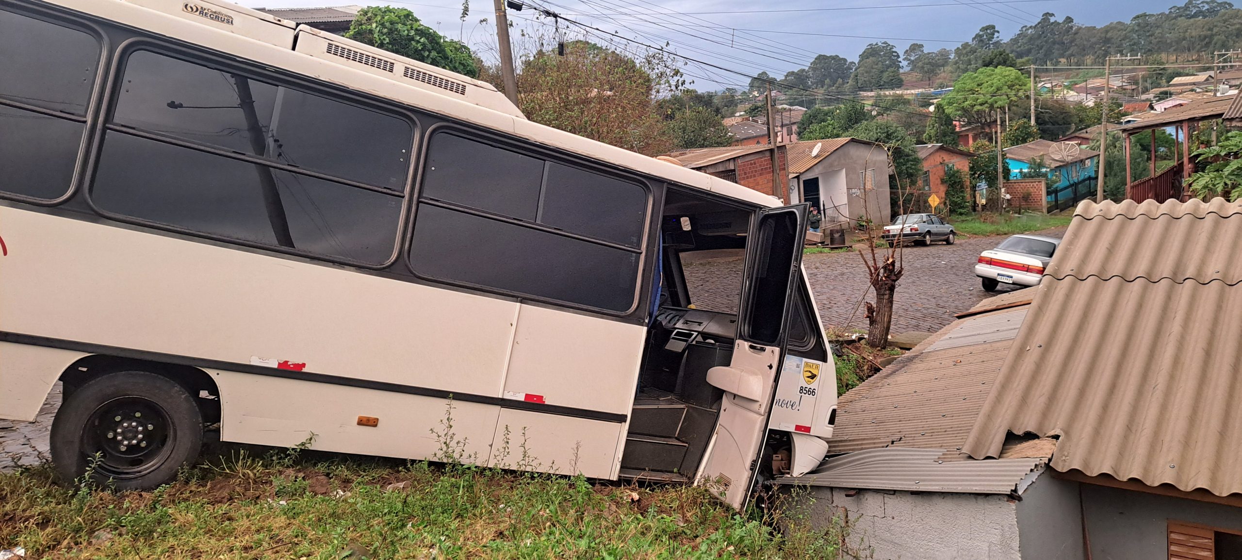 Conforme apurado pela nossa reportagem, o micro-ônibus trafegava no sentido centro/bairro em uma decida perdeu o controle vindo a colidir com uma residência, resultando apenas em danos materiais, ninguém ficou ferido. A consequência poderia ter sido maior se não fosse um barranco que praticamente segurou o ônibus, evitando que invadisse a casa. A pista estava bastante escorregadia por causa da umidade.