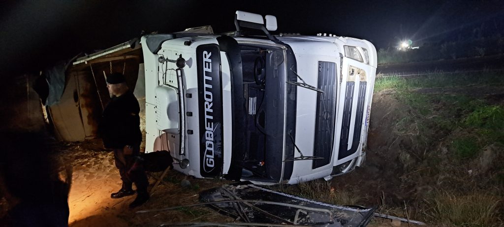 CAMINHÃO BITREM TOMBA APÓS TER SUA FRENTE CORTADA POR OUTRO CAMINHÃO NA RSC 153 QUE LIGA SOLEDADE A BARROS CASSAL Um caminhão Bitrem tombou após…